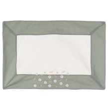 Das kleinere Handtuch hat eine unifarbene/salbei Bordüre.