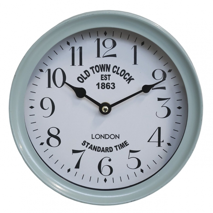 Wanduhr „Old Town Clock“ Ein Hauch von Retro-Charme trifft auf einen dekorativen Farbakzent in zartem Mintgrün. Das weiße Zifferblatt mit klaren schwarzen Zahlen sorgt für ausgezeichnete Lesbarkeit und zeitlose Eleganz. Maße: D 22,5 cm, 0,65 kg Material: Glas, Eisen mintgrün patiniert, Batteriebetrieb 1 x AA Sie haben eine Frage zu diesem Produkt? Dann schreiben Sie uns eine kurze MAIL, oder rufen Sie an uns an unter: 089 / 68 72 32. Wir beraten Sie gerne!