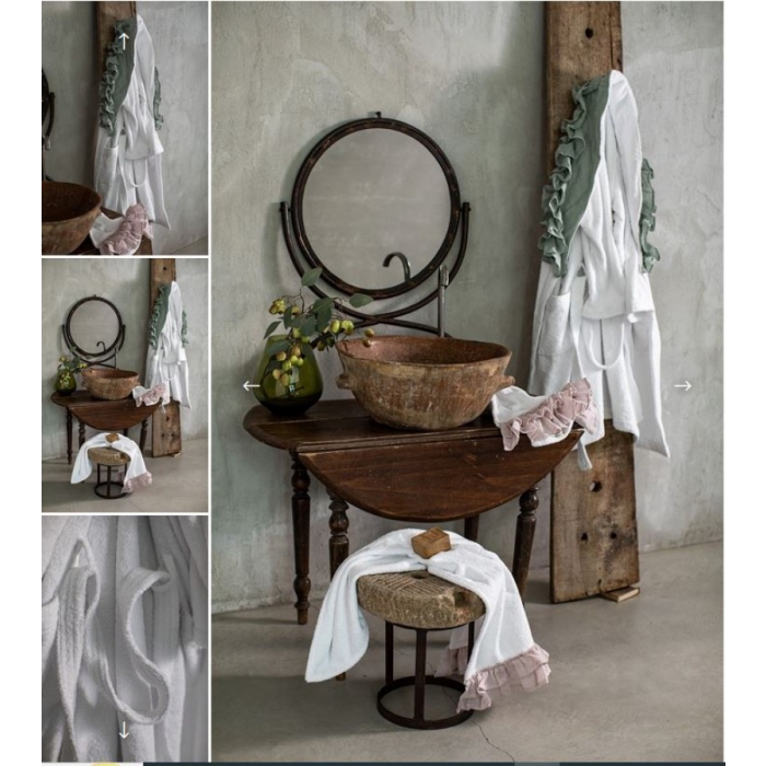 Bella Donna - Weiches Frottee Handtuch, veredelt mit einem Volant aus zarter Leinengaze – ein sinnlicher Genuss, der uns Frauen immer wieder bezaubert.