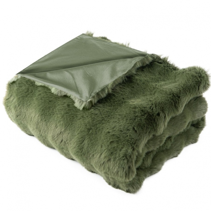Die fein strukturierte, elegante Kuscheldecke in edlem Grünton, wärmt flauschig weich an kühlen Abenden und ist zu dem stilvoll dekorativ.